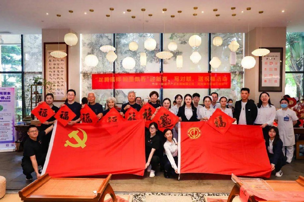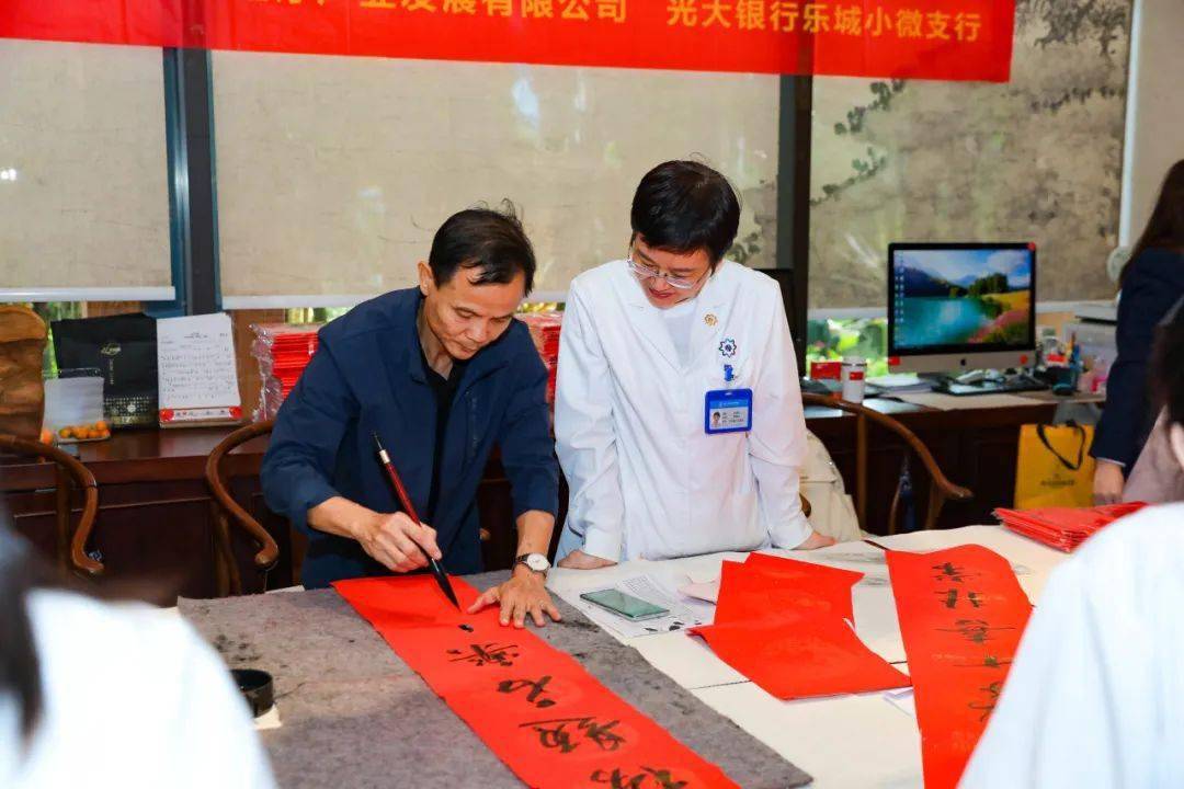 新春将至,年味渐浓。2月2日,为弘扬中华优秀传统文化,营造温暖和谐、喜庆祥和的新春节日气氛,同时为一路携手相伴的广大一龄用户和员工送去新春祝福,由中共188bet专属福利 支部委员会、188bet专属福利 工会委员会、中国光大银行琼海支行工会工作委员会、188bet专属福利 、光大银行乐城小微支行联合举办的“龙腾褔祥 翰墨飘香”迎新春、写对联、送祝福活动在博鳌188bet体育网 生命养护中心国医书苑火热开展,活动邀请了多位书法爱好者,现场写春联、送福字,为188bet体育网 用户和员工提前送上浓浓的新春祝福。